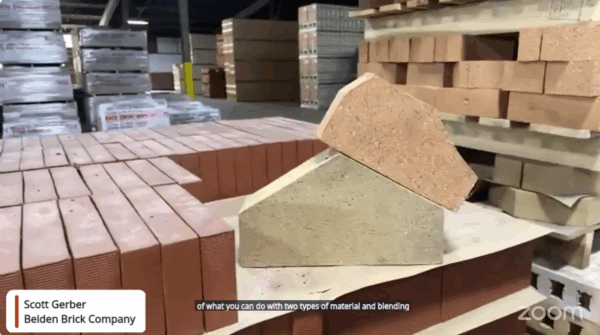 During the virtual field trip, Scott began by showcasing the fireclay and shale used to form bricks. By adding water and precisely mixing the clay and shale powders, it is compacted in a vacuum pug mill and pushed through an extruder. A long column of green brick emerges and is cut to shape, allowing Belden Brick to create a wide range of customized designs for its customers. The tour continued through the drying, firing, and glazing stages, giving participants a firsthand look at the craftsmanship and precision involved in brick production.