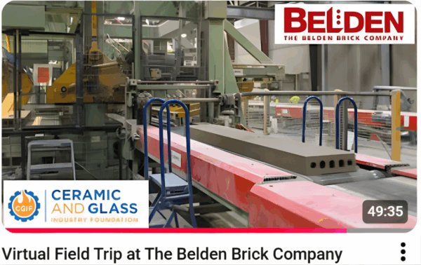 The Ceramic and Glass Industry Foundation (CGIF) recently partnered with Belden Brick to host a virtual field trip that gave teachers and students around the world an inside look at how bricks are made. Led by plant manager Scott Gerber, at Belden Brick’s Plant 6, the tour walked through each stage of the brickmaking process, from raw material straight out of the ground to the finished brick ready to be used in building.